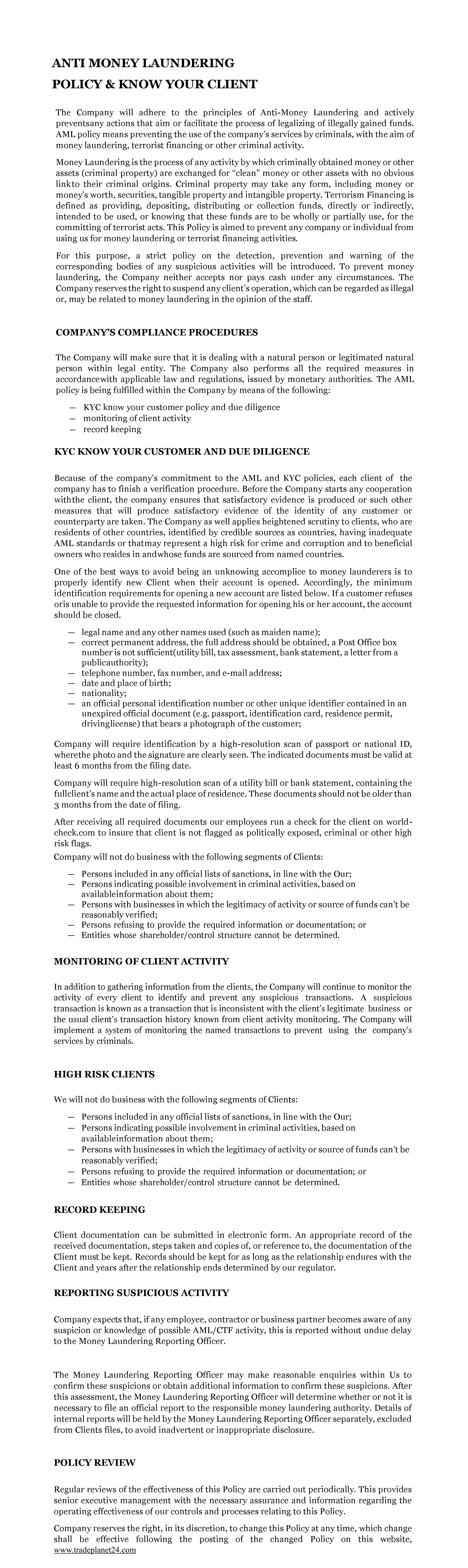 Anti Money Laundering Policy